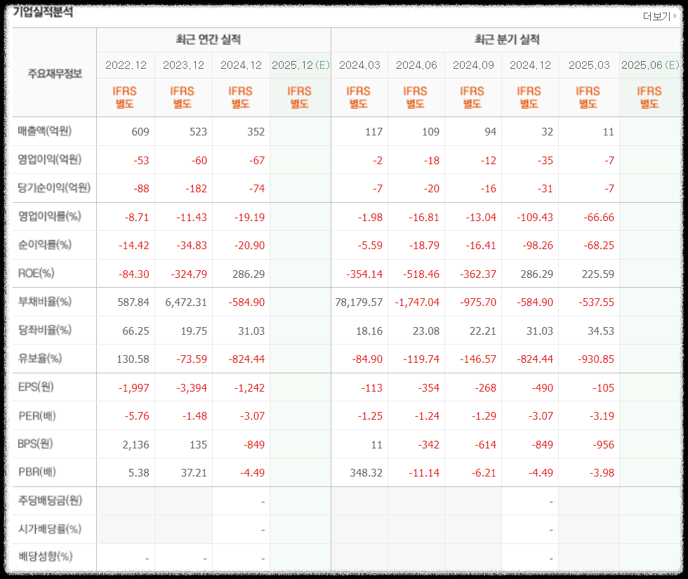이는 다시 말해 회사가 단순한 재무난을 넘어, 사업을 계속할 수 있는 최소한의 현금 확보조차 힘든 ‘계속기업’으로서의 자격을 잃어가고 있다는 신호입니다. 한편으로는 단기간에 회복이 힘든 경영위기의 심각성을 상기시킵니다.